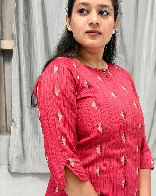 Chanderi cotton butta kurti with button up v cut neck comes with an parallel straight pants